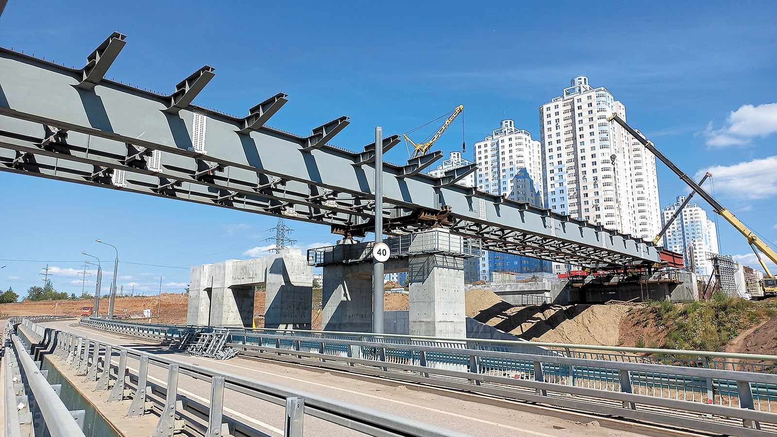 Как сообщил подрядчик, на сегодняшний день завершено возведение опор, по которым ведётся надвижка мостовых пролётов. Закончить правое направление планировалось к 1 сентября 2023 года, однако строителям удалось завершить работы на три недели раньше. Левую половину моста будут надвигать до октября 2023 года. После этого пролёты нужно будет опустить на опоры, и можно приступать к устройству монолитных железобетонных плит под проезжую часть. Самая высокая опора будущего моста достигает 28 м. Принцип их обустройства такой же, как и на мосту через реку Чусовую, только здесь опоры располагаются на суше. Для возведения семи опор было пробурено и обустроено более 130 свай, глубина бурения составила 25 м.