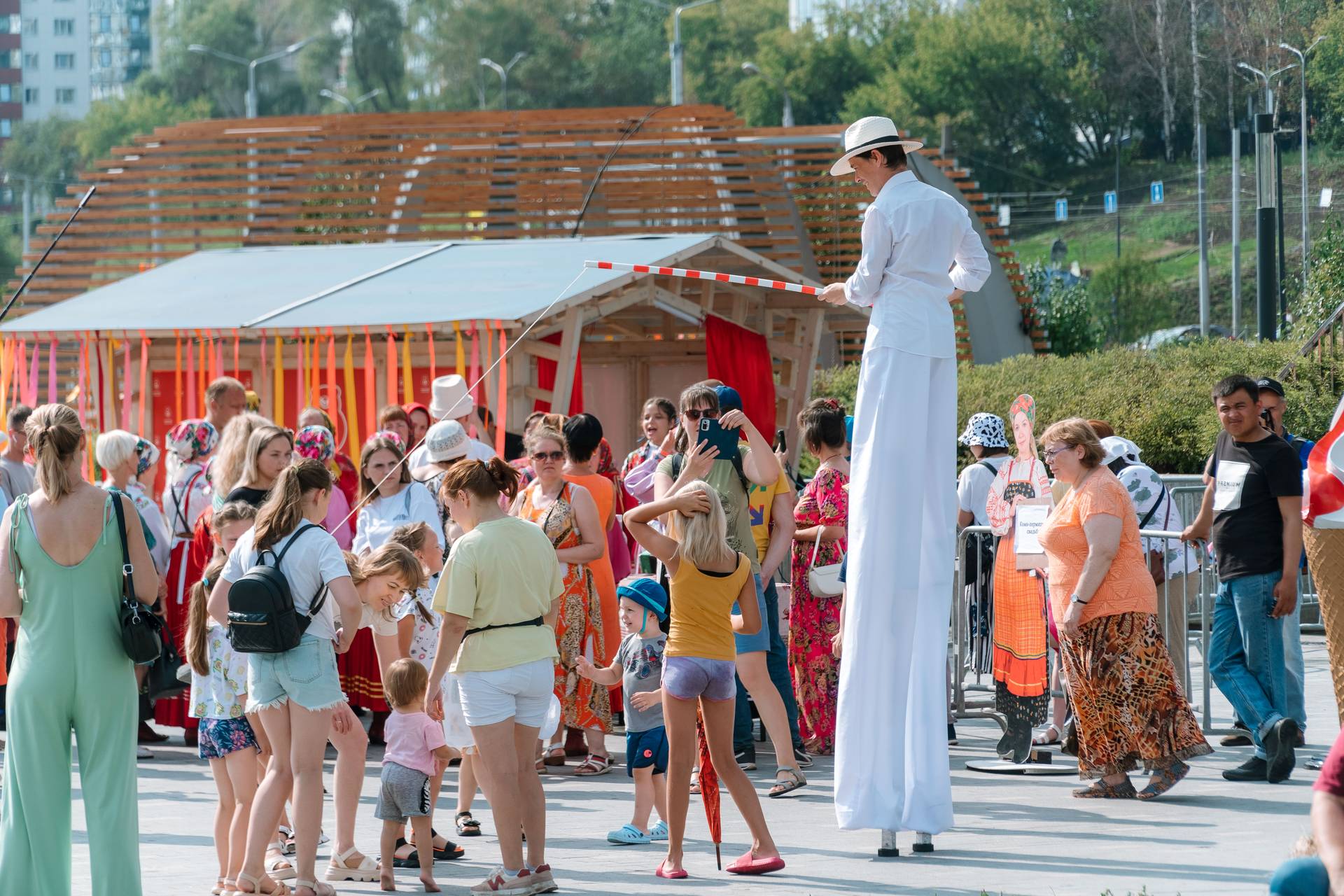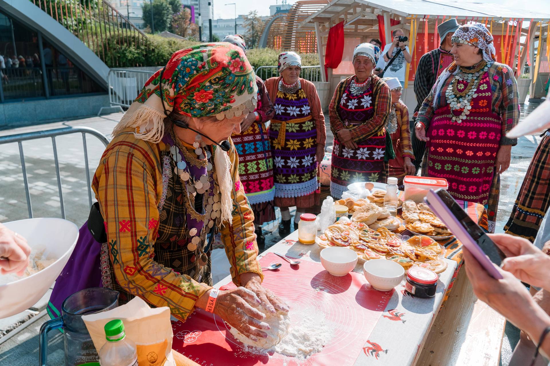 Получился фестиваль, вписанный в пространство города, но в то же время предлагающий формат зелёного острова внутри мегаполиса. Те ландшафтные решения, которые есть на эспланаде, позволили это сделать: сочетание разнообразной зелени и форм фестивальной активности оказалось органичным — от вождения хороводов до лепки города из глины. Отлично вписался сюда и рассказ о том, как нужно готовить ярушник — традиционный хлеб староверов, и вообще все кулинарные мастер-классы, которые дают не крутые повара из модных ресторанов, а старожилы, которые показывают, как готовится традиционная национальная кухня — правильно, по-деревенски.
