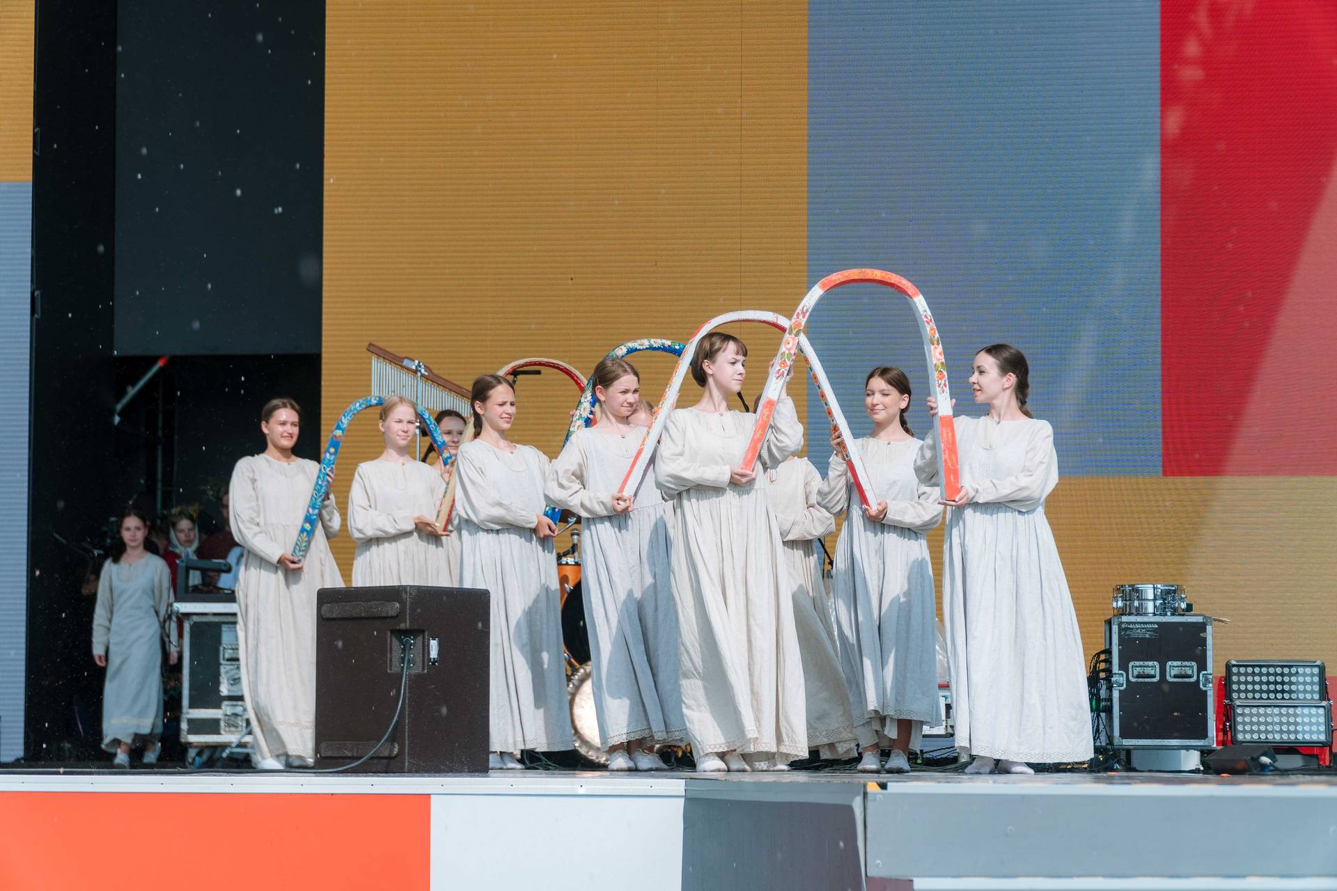 Очень кстати оказалось огромное количество венков из полевых цветов и свежей травы, которые мы заготовили и просто раздавали. Очень много фотографий, на которых в этих венках и приезжие артисты, и обыкновенные зрители.