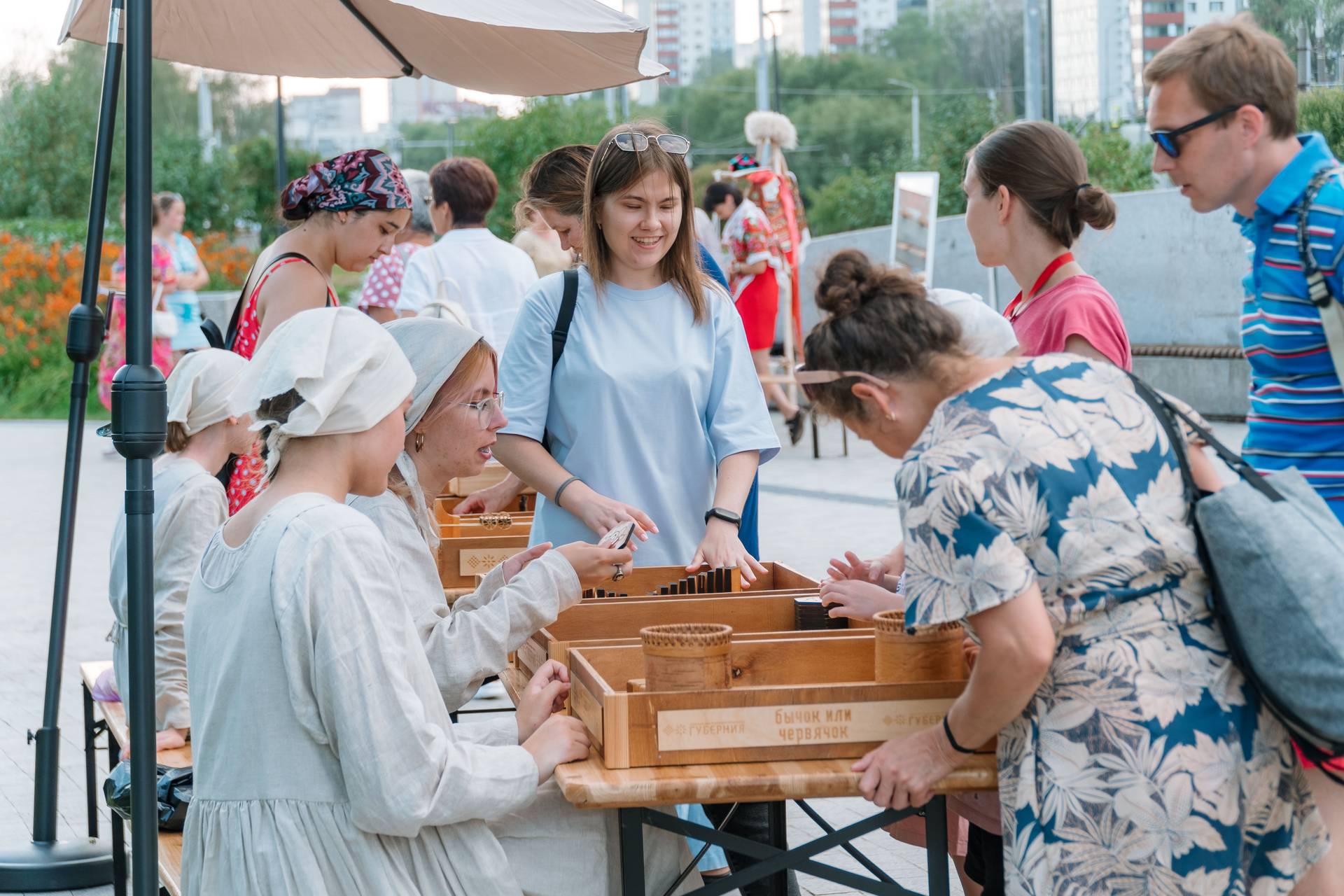 Мне кажется, на этот формат есть запрос. Получилось, что «Обряды — наряды» включили и транслировали те связанные с этнической темой праздники, которые входят в программу «59 фестивалей 59 региона», мы предложили формат, который в городских праздниках отсутствует. Большинство фестивалей в городе формируются вокруг сценической площадки: всё, что происходит на открытом воздухе в Перми — это сцена и зрители, люди слушают джаз, смотрят театральные спектакли, танцевальные батлы или что-то ещё, поэтому оказался таким востребованным наш формат прогулки, формат внесценической коммуникации. Это видно хотя бы по тому, сколько людей включилось в активности, которые были в фестивальном круге «Обрядов-нарядов».