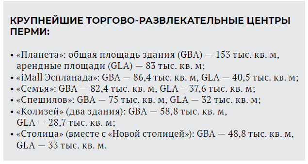 В феврале 2022 года после неоднократных переносов сроков открылась первая очередь торгово-развлекательного центра «iMall Эспланада» в самом центре Перми. После этого в городе стало шесть подобных объектов, заслуживающих названия «крупных». Все они, как и торговые центры поменьше, переживают непростые времена — последствия пандемии, уход западных товарных брендов и экранных блокбастеров; а конкуренция, между тем, растёт. В этой ситуации руководство торговых центров ищет новые подходы к традиционным видам извлечения прибыли: продаже и сдаче в аренду площадей, поискам интересного товарного наполнения, организации развлечений.