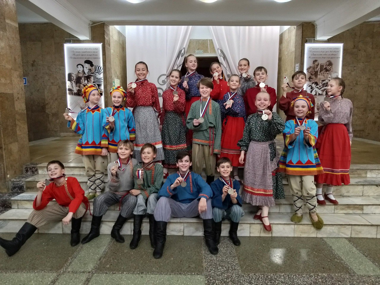 — В Калуге мы выступили в нескольких номинациях и везде получили звания лауреатов. Анна Мерзлякова и Анастасия Мансурова выступали с разножанровыми народными песнями и стали лауреатами второй степени. Мария Бурнышева выступала как сказительница — рассказывала сказку «Про котика и петушка» и тоже стала лауреатом второй степени. Анастасия Фету представила исследование «Традиционные выставки невест», посвящённое крещенскому обряду, когда девушки нарядно одевались и выходили представиться женихам и их родителям, — эта работа принесла нам лауреатство первой степени. Лауреатами первой степени стали и ансамбли — средняя и старшая группа фольклорного ансамбля «Барабушка».