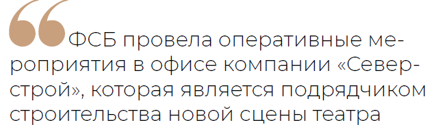 Позже директор по развитию ТЮЗа Алексей Лукашов в беседе с «Новым компаньоном» заявил, что информация о выемке документов в театре не является корректной. Он уточнил, что ФСБ провела оперативные мероприятия в офисе компании «Северстрой», которая является подрядчиком строительства новой сцены театра.