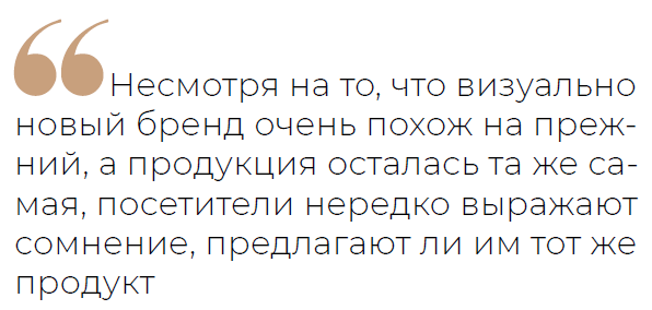 Основатель группы компаний «Алендвик» Александр Никифоров говорит, что, как и в случае с магазинами, ребрендинг известных сетей общепита снизил число посетителей в их заведениях. «Люди относятся к этим переменам с подозрением, даже сегодня, уже по прошествии времени. Мы это видим на примере бывшего «Баскин Роббинса». Несмотря на то, что визуально новый бренд очень похож на прежний, а продукция осталась та же самая — с московской фабрики, посетители нередко выражают сомнение, предлагают ли им тот же продукт. Полагаю, у сетей, заменивших McDonald's и KFC, аналогичная ситуация», — считает Никифоров.