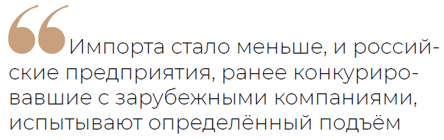 Импортозамещение Пищальников тоже признаёт состоявшимся, но полагает, что по нему нужны более подробные данные. Он делит импортозамещение на две категории. «Первый вариант — когда у вас на рынке присутствуют иностранные товары, но вы производите их качественные аналоги и постепенно вытесняете импортную продукцию со своего рынка. Второй вариант — когда вам больше не дают потреблять какую-то иностранную продукцию, и вы делаете свою, но более низкого качества. Какое-то время такое импортозамещение тоже возможно. Но если рядом есть страна, со стороны которой нет санкций, а качество продукции там выше, то велика вероятность, что эти товары придут на ваш рынок и импортозамещение сойдёт на нет. У нас замещение иностранной продукции, очевидно, произошло. Могу на примере своего предприятия подтвердить, что мы стали использовать отечественные технологии и материалы. Судя по статистическим данным — тому же растущему индексу промпроизводства — тоже можно говорить о довольно успешном импортозамещении. Но сейчас хотелось бы получить не только сухие цифры, но и какую-то информацию о качестве этого импортозамещения, чтобы оценить его перспективы», — говорит Дмитрий Пищальников.
