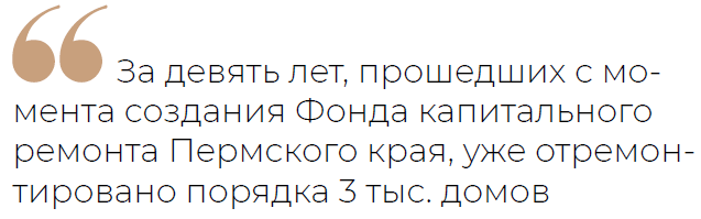 За девять лет, прошедших с момента создания Фонда капитального ремонта Пермского края, уже отремонтировано порядка 3 тыс. домов, выполнено более 8 тыс. видов работ.