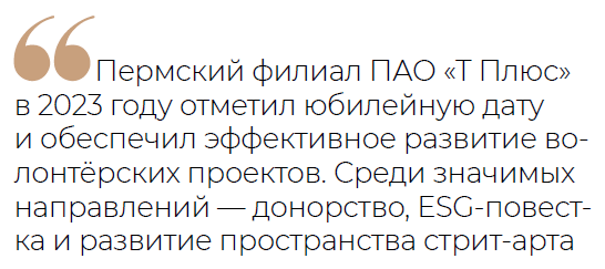 Помимо основной деятельности, в уходящем году сотрудники «Т Плюс» и «ЭнергосбыТ Плюс» приняли участие в донорской акции «Мы с тобой одной крови». 152 энергетика сдали 68 литров крови, пополнив запас медицинских учреждений Пермского края. В числе доноров — топ-менеджеры компании. В компании считают донорство возможностью сделать вклад в выздоровление людей и спасение жизней.