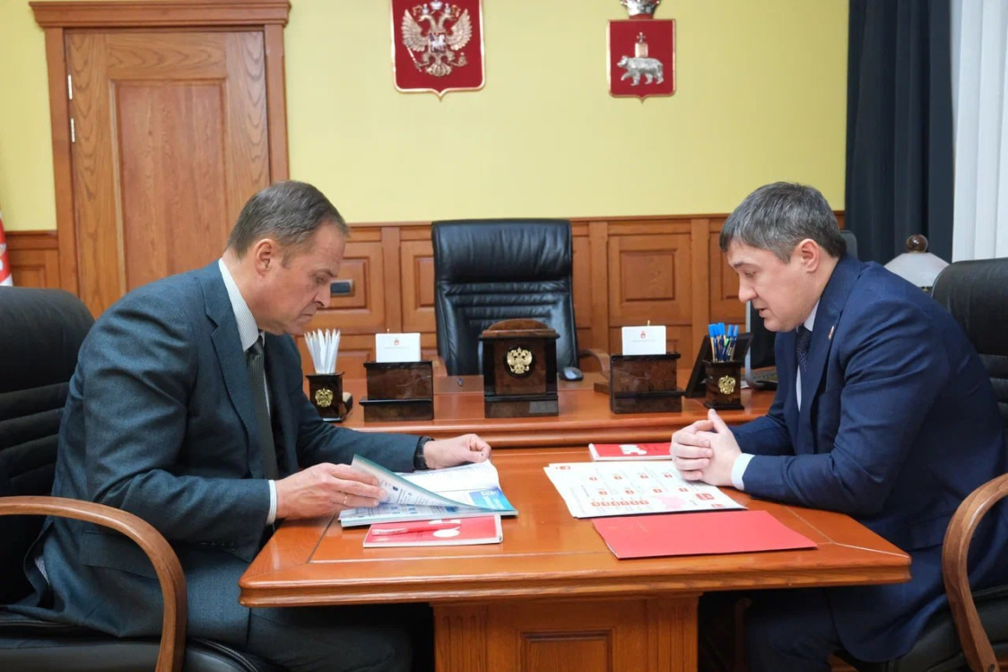 После посещения важных объектов и торжественных церемоний Игорь Комаров и Дмитрий Махонин провели рабочую встречу. Губернатор Прикамья рассказал о праздновании 300-летия Перми, сообщил об основных итогах региона в 2023 году в сферах здравоохранения, образования, развития промышленности.