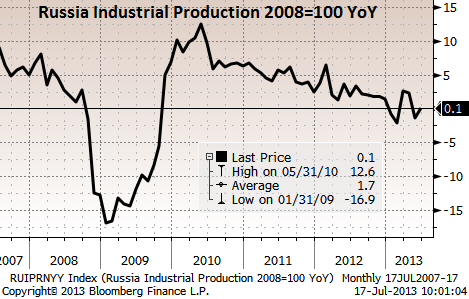 Росстат опубликовал темпы роста промпроизводства в РФ за июнь. Они слабо отличаются от нулевых, отражая общую стагнацию в экономике. Сегодня-завтра Росстат опубликует розничные продажи, безработицу, зарплаты и располагаемые доходы за июнь.