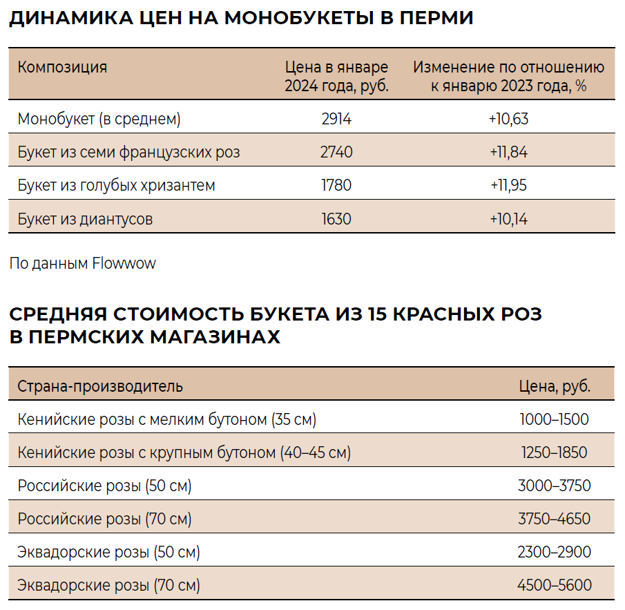 Рост цены не снизил спрос на цветы. В Flowwow, наоборот, отметили существенное увеличение продаж букетов в Перми в январе — на целых 76,5% год к году. Букеты, состоящие из одного сорта цветов, стали покупать в два раза чаще, чем в январе 2023 года, авторские — в полтора раза.