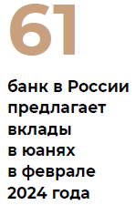 С февраля 2022 года вкладчики начали поиск альтернативы долларовым депозитам. Директор по контенту и аналитике финансового маркетплейса «Выберу.ру» Ирина Андриевская отмечает, что вклады в валюте Поднебесной банки предлагали и до 2022 года. Но работали с ними кредитные организации с «пропиской» в Дальневосточном федеральном округе, а также те, кто обслуживал потоки экспортёров и импортёров. «Однако уже в феврале 2024 года вклады в юанях предлагает 61 банк, а общее число сберегательных продуктов выросло до 117. В 2022-м мартовский онлайн-спрос вкладчиков стал рекордным. Он так и не был превзойдён за минувшие два года. Затем интерес людей к этой валюте для сбережений стал расти более сбалансированными темпами», — рассказывает Ирина Андриевская.