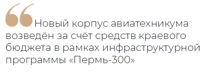 Напомним, новый корпус авиатехникума возведён за счёт средств краевого бюджета в рамках инфраструктурной программы «Пермь-300».