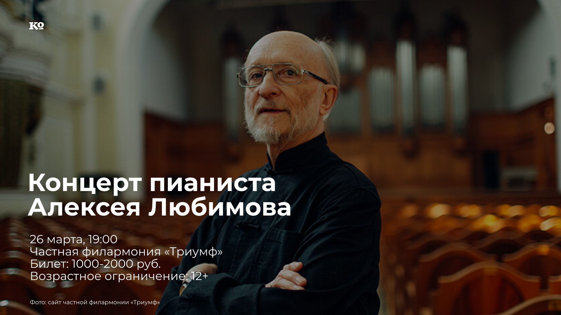 Народный артист РФ Алексей Любимов, без преувеличения, — настоящая легенда ХХ-ХХI веков. Пианист каждым звуком доказывает, что фортепиано и классическая музыка — это лучшее, что есть в этом мире. Алексей Любимов уже долгое время постоянно проживает в Париже, и его выступления в России — чудо и редкость. Концерт знаменитого музыканта в «Триумфе» будет состоять из двух отделений. В программе: Вольфганг Амадей Моцарт, Иоганесс Брамс, Фридерик Шопен, Франц Шуберт и Валентин Сильвестров.