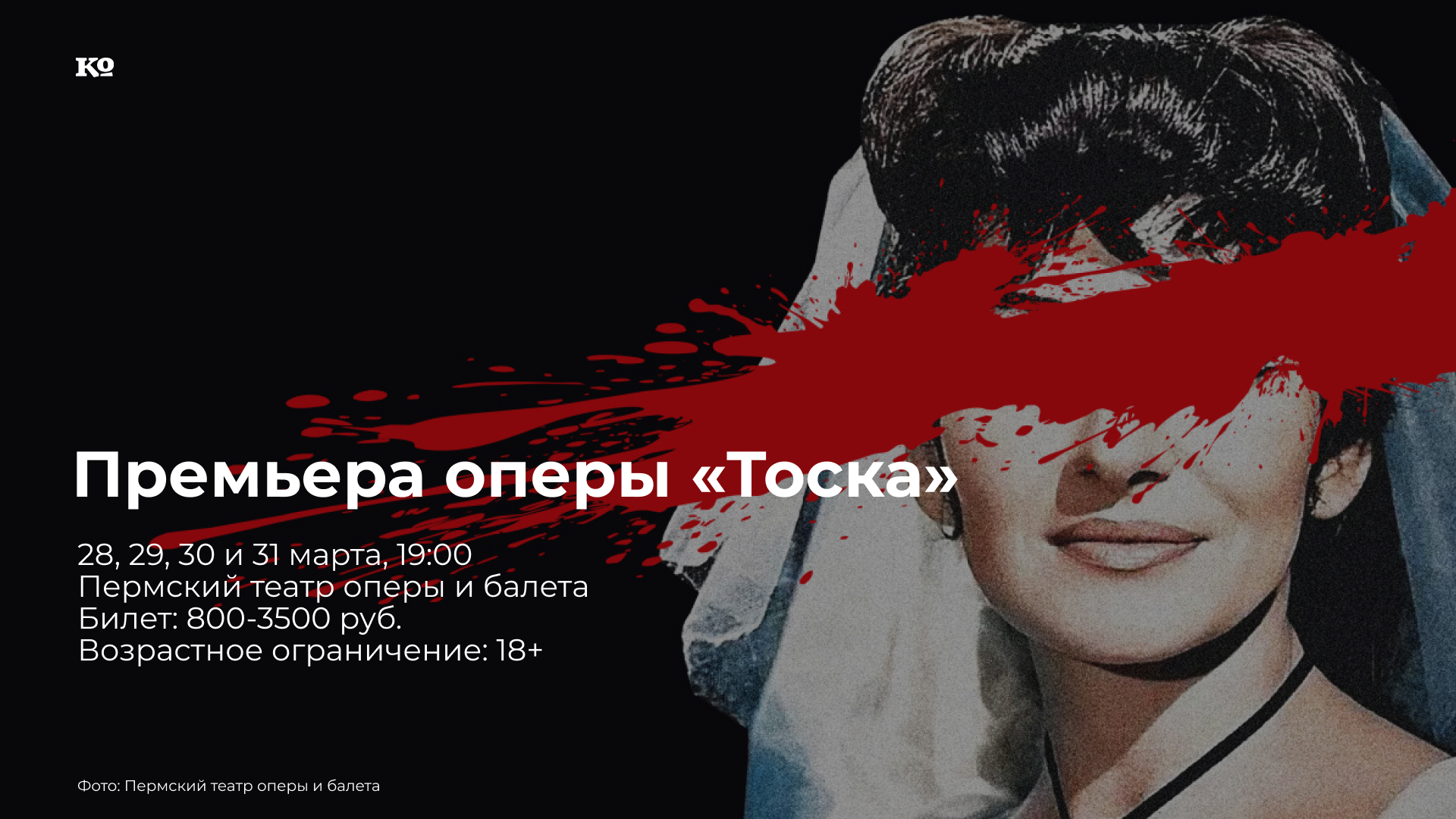 «То́ска» (итал. Tosca) — опера Джакомо Пуччини в трёх действиях на либретто Луиджи Иллики и Джузеппе Джакозы по одноимённой драме Викторьена Сарду. Премьера оперы состоялась в Театро Костанци в Риме 14 января 1900 года. Над постановкой «Тоски» на сцене Пермского театра оперы и балета работала яркая и интригующая команда: режиссёр — резидент Пермской оперы Фёдор Федотов; музыкальный руководитель — дирижёр Тимур Зангиев, художник-постановщик — Лариса Ломакина, постоянный соавтор Константина Богомолова; хореограф — художественный руководитель «Балета Евгения Панфилова» Алексей Расторгуев. В заглавной партии выступят пермские солистки Зарина Абаева и Анжелика Минасова. Опера исполняется на итальянском языке с русскими титрами.
