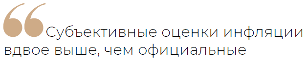 Например, в марте 2024 года люди без сбережений оценили наблюдаемую ими инфляцию в 16,7%, а люди со сбережениями — в 13%. Такие данные публикует «Интерфакс» со ссылкой на результаты опроса, проведённого «инФОМ» по заказу Центробанка. То есть субъективные оценки инфляции вдвое выше, чем официальные.