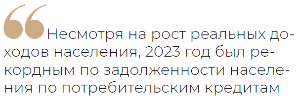 При этом, отмечает аналитик АЦ «Банки.ру» Инна Солдатенкова, за 2022—2023 годы объём кредитов, выданных банками физическим лицам, вырос на 66% — с 1,5 трлн до 2,4 трлн руб.
