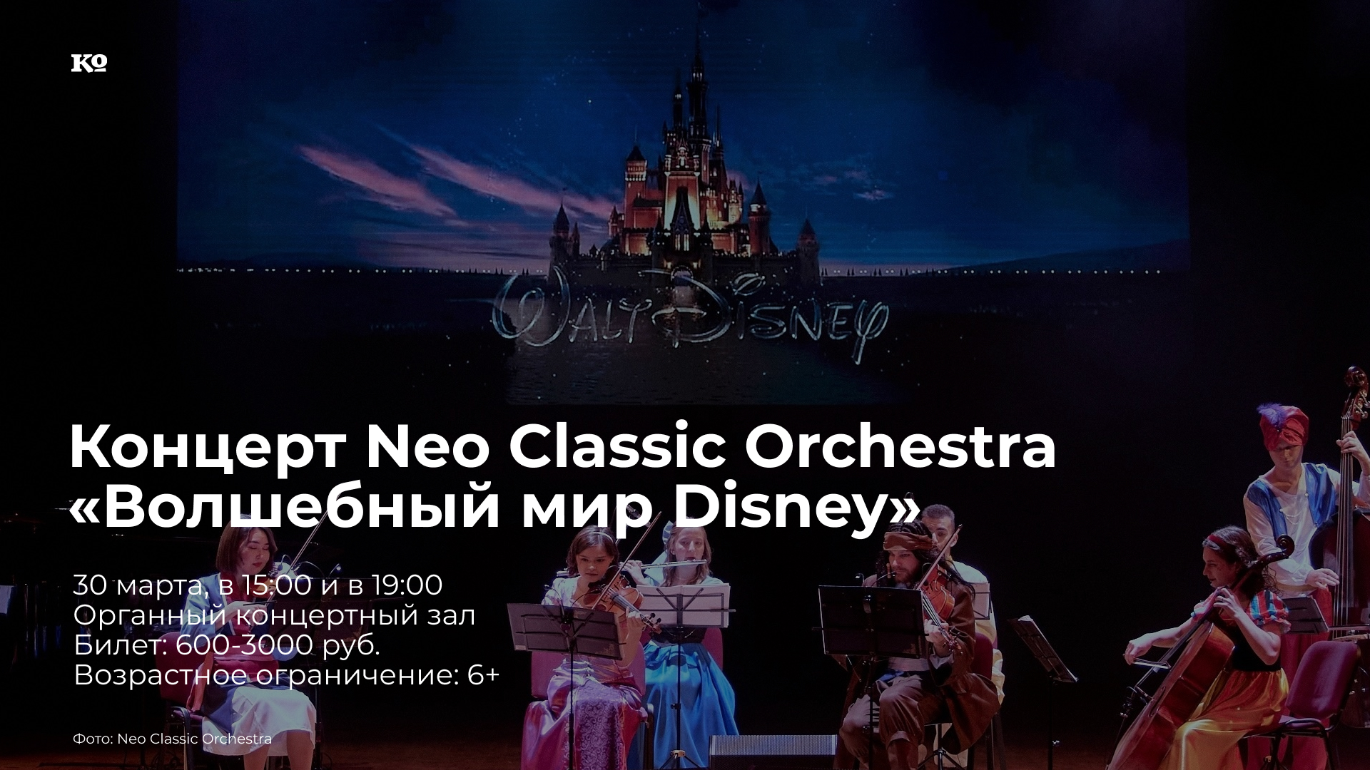 Neo Classic Orchestra — коллектив профессиональных музыкантов Урала и Сибири. Своей основной задачей артисты видят популяризацию современной классической музыки. На концертах «Волшебный мир Disney», с которыми артисты в эти выходные выступят в Перми, прозвучат саундтреки из всеми любимых диснеевских мультфильмов «Король Лев», «Алладин», «Холодное сердце», «Русалочка», «Красавица и Чудовище», «Белоснежка», «Золушка», а также из фильмов «Звёздные войны», «Пираты Карибского моря», «Малифисента» и других картин. Музыканты не просто исполняют переложения любимых диснеевских мелодий: они предлагают своё авторское видение музыкальных шедевров мира анимации.