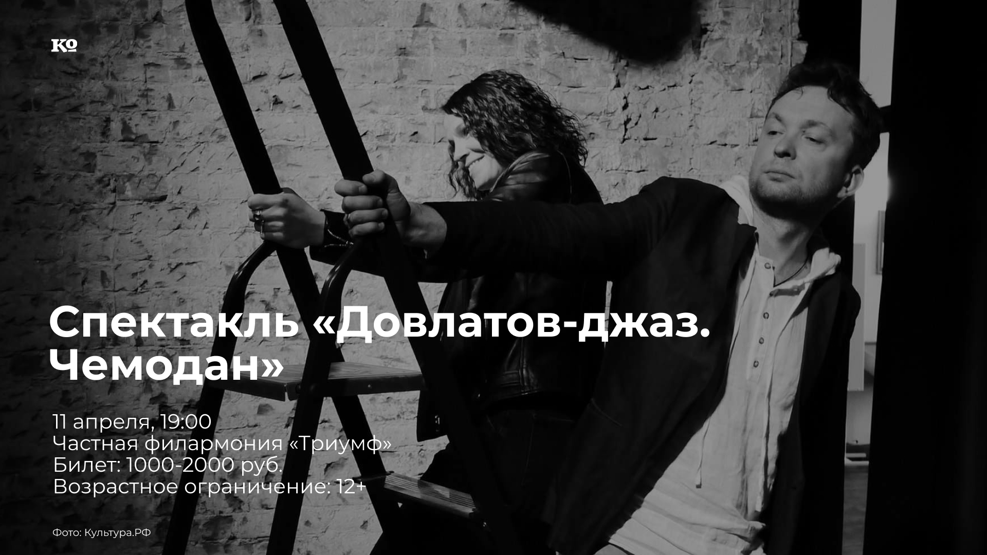 Один из лидеров нового джаза и перформативной сцены в России, саксофонист, режиссёр, актёр, поэт Алексей Круглов и ведущая отечественная джазовая певица, пианистка Карина Кожевникова представляют спектакль по рассказам из книги Сергея Довлатова «Чемодан». Постановка представляет собой красочную фантазии, возникающую вокруг довлатовских текстов, где участники импровизируют, вступают с писателем в диалог, играют с ним и персонажами его рассказов, иронизируют над самими собой. В проекте звучат стихи Иосифа Бродского, цитаты из Ленина и Маркса, и конечно же, добавляют особую изюминку известные джазовые композиции, исполняемые дуэтом.