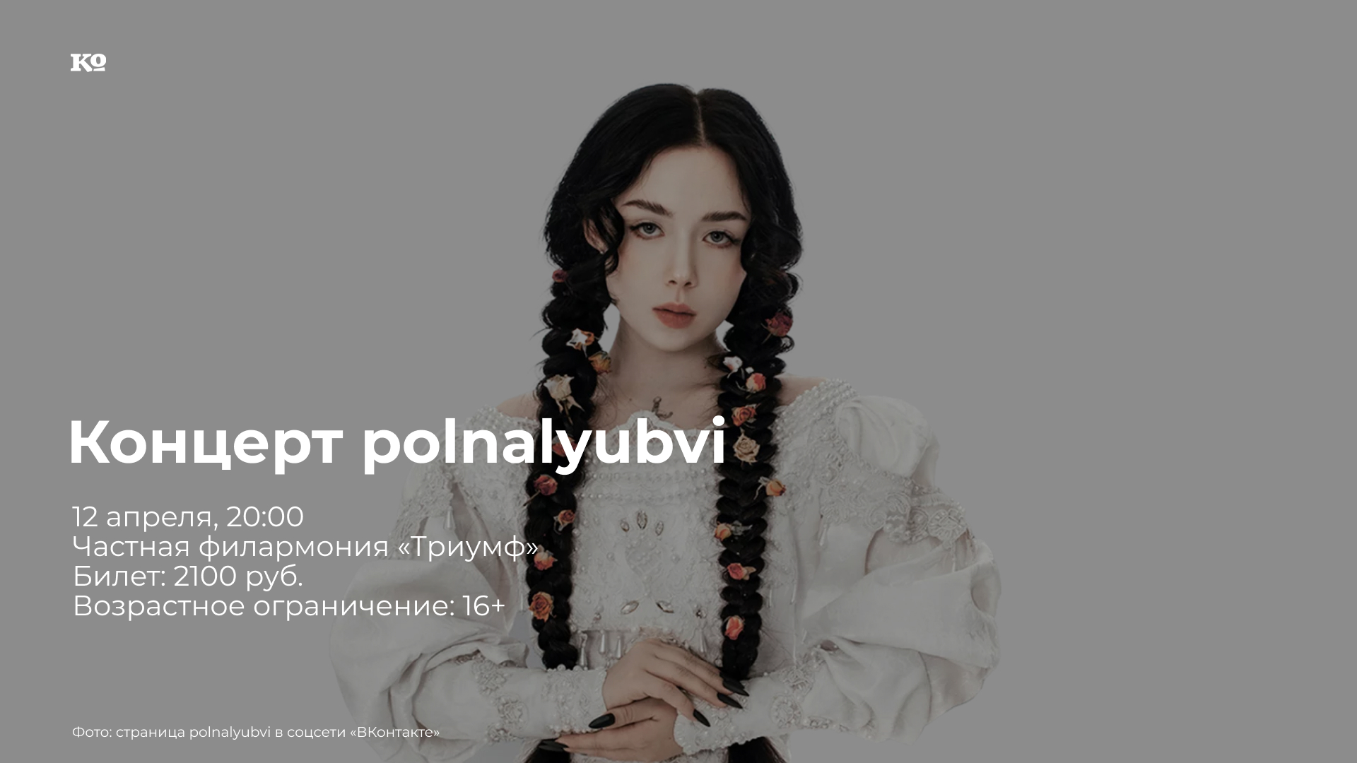 Российская певица polnalyubvi (настоящее имя — Марина Демещенко), выступающая в жанре инди-поп, известна своим уникальным подходом к музыке и перформансу. Каждый её концерт — это сочетание живой музыки, художественных образов и глубоких текстов, позволяющих зрителям не только слушать, но видеть и чувствовать каждую ноту и слово. Сейчас у певицы проходит большой весенний концертный тур. В эту пятницу она выступит в Перми. Поклонников ждёт неповторимое шоу, где каждый сможет не только услышать любимые песни в новом звучании, но и открыть для себя что-то совершенно новое.