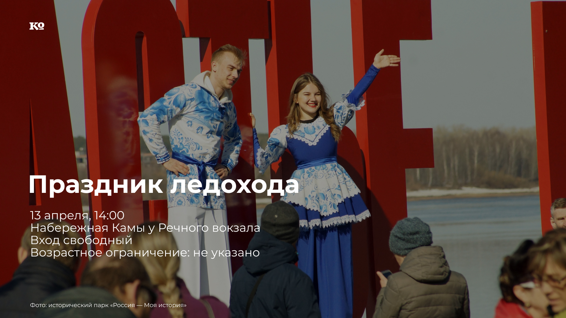 В XIX веке жизнь пермяков была неразрывно связана с Камой. Ледоход пробуждал город, празднично одетые горожане заполняли берега реки и восторженно смотрели на проплывающие льдины. Радостное событие сулило скорое начало судоходства, а значит — оживление городской жизни, торговли, поездки на дачи. Несколько лет назад исторический парк «Россия — Моя история» решил возродить городскую традицию встречи весны и стал устраивать Праздник ледохода. В программе праздника в этом году: ярмарка, уличные гулянья, выступления Пермского губернского оркестра, различных музыкальных и творческих коллективов.