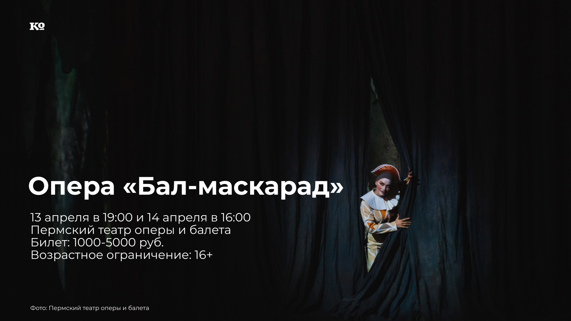 «Бал-маскарад» был написан итальянским композитором Джузеппе Верди в 1958 году и стал одной из опер, принёсших ему мировую славу наряду с «Риголетто», «Трубадуром» и «Травиатой». На сцену Пермской оперы «Бал-маскарад» вернулся после долгого перерыва в прошлом году в постановке Владиславса Наставшевса. Жанр спектакля — трагифарс. В нём встречаются два мира — закулисья и сцены. Всегда ли можно провести границу между реальностью и вымыслом? И не является ли жизнь подлинным балом-маскарадом, где все носят маски — и всё оказывается не тем, чем кажется? Опера исполняется на итальянском языке с русскими титрами.
