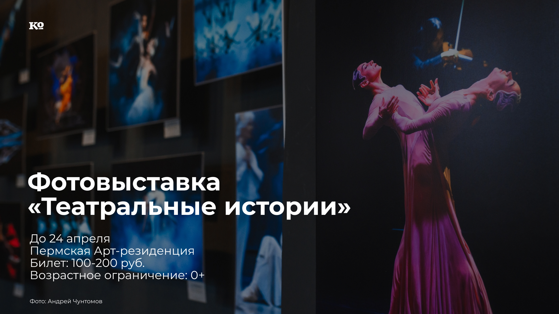 В Пермской Арт-резиденции завершается персональная выставка фотографа Андрея Чунтомова «Театральные истории». Мастером фотографии запечатлены вдохновенные выступления именитых артистов — оперных певиц Надежды Павловой, Натальи Буклаги, Сары Бланш, Элоны Коржевич, танцовщиков балета Дианы Вишнёвой и Марсело Гомеса, Светланы Захаровой, Полины Булдаковой и Георгия Еналдиева. В кадр фотографа попали также балетмейстер, хореограф, театральный режиссёр Владимир Васильев, дирижёр Теодор Курентзис, пианистка Полина Осетинская, виолончелистка Мириам Пранди, популяризатор классической музыки, скрипач, пианист Михаил Казиник и другие.