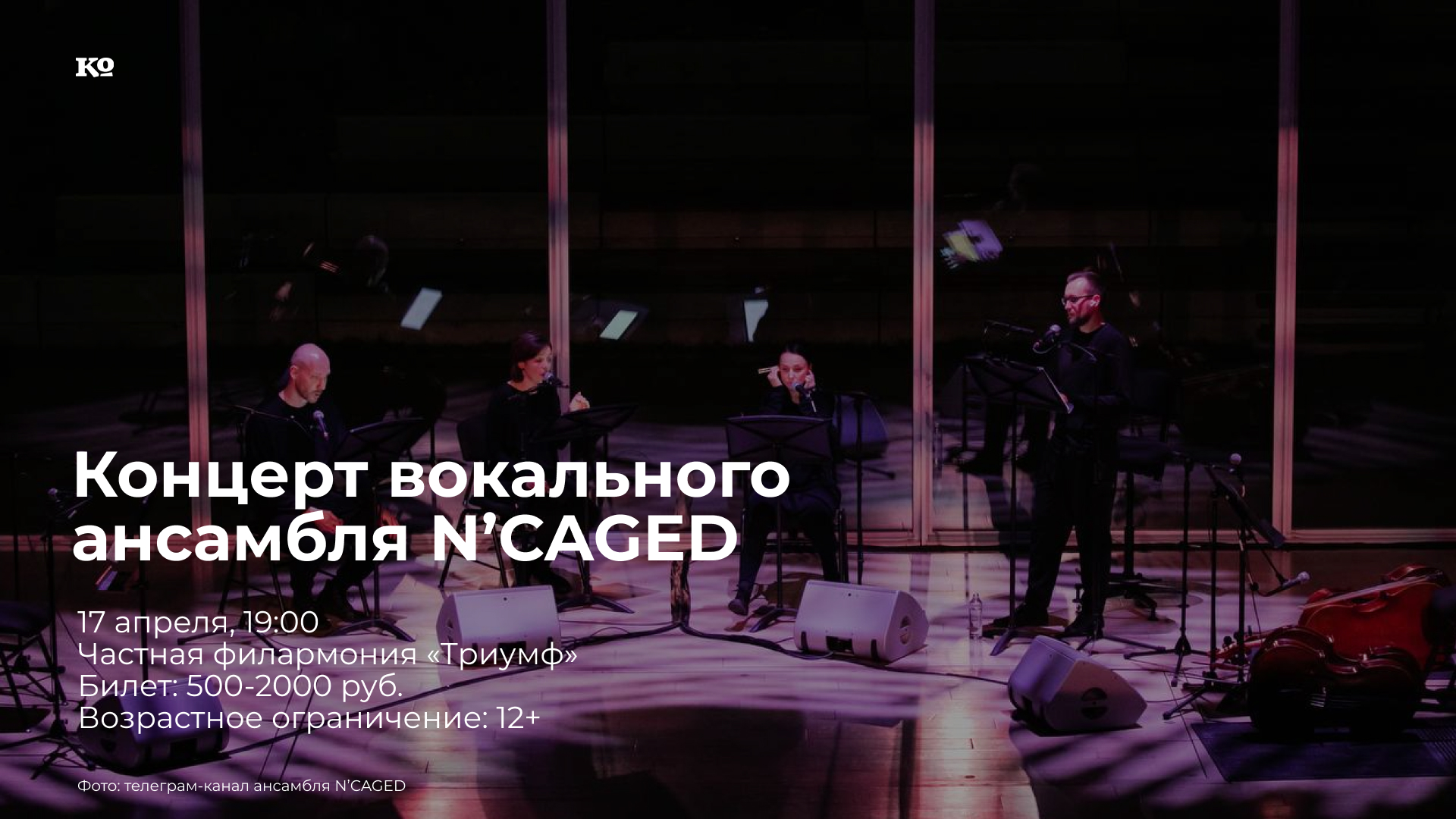 Вокальный ансамбль N’CAGED был основан Ариной Зверевой в 2013 году. Коллектив специализируется на исполнении современной музыки, сотрудничает с композиторами в оперных и драматических постановках, концертных программах, перформансах и музейных проектах. В программе концерта ансамбля в «Триумфе»: 8 пьес на стихи русских поэтов для квартета a capella, «Белорусские песни» на тексты Константина Стешика, мотет «Воздух-воздух», песни из цикла на стихи Эзры Паунда и Il bianco E dolce cigno Дмитрия Курляндского.