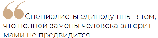 В то же время все специалисты единодушны в том, что полной замены человека алгоритмами не предвидится. Нейросети не замещают человека, а выступают в роли ассистента и существенно упрощают рабочий процесс.