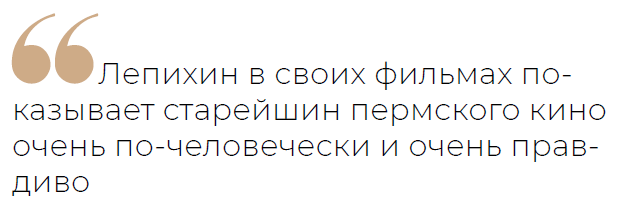 «История пермского кино в лицах» — авторский проект Лепихина. Вся его жизнь прошла в пермском кино — сначала на студии «Пермтелефильм», а потом и в «Новом курсе». Он умер трагически рано, в 66 лет, от ковида и, возможно, был последним в Перми настоящим кинематографистом классической школы: будучи изначально оператором-виртуозом, он дорос до режиссёра авторского кино, но при этом продолжал снимать лично, доверяя лишь своему глазу.