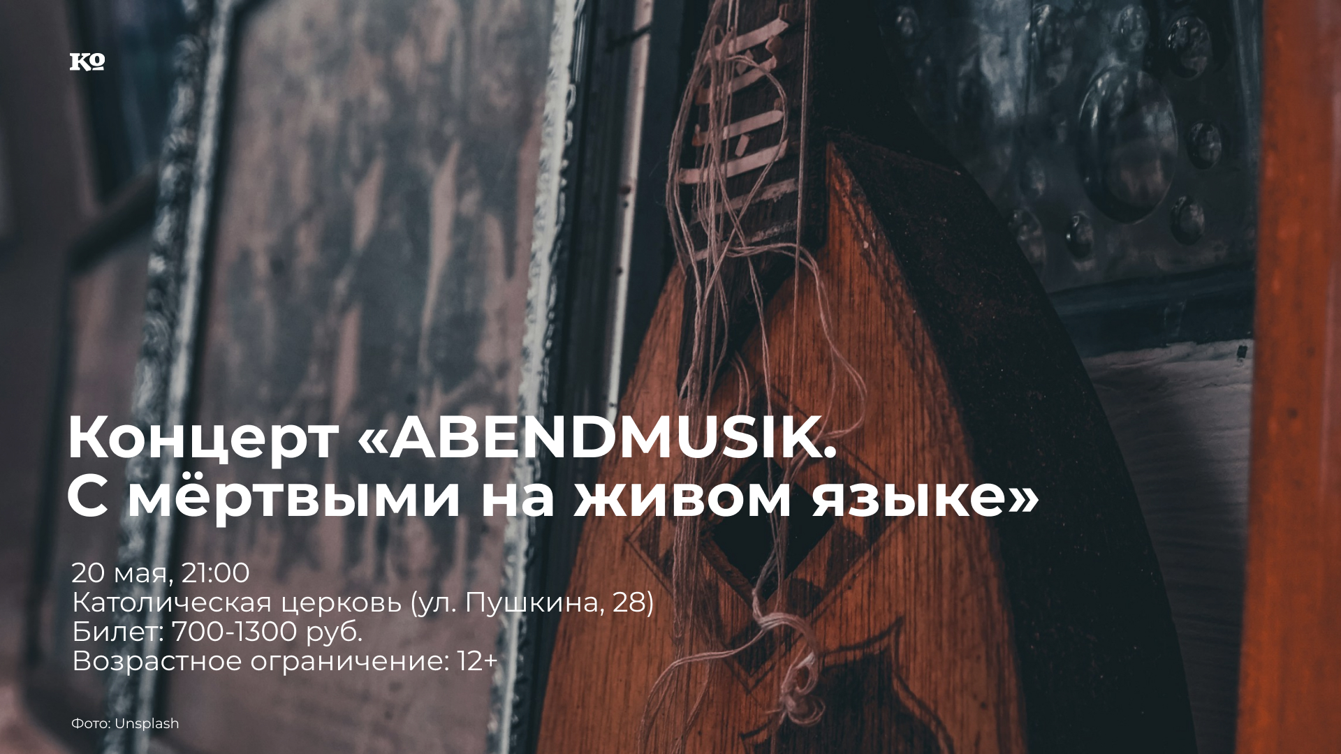 Частная филармония «Триумф» продолжает проект ABENDMUSIK (в переводе с немецкого «вечерняя музыка») — цикл концертов духовной и светской музыки в особой атмосфере старинной церкви. В программе «С мёртвыми на живом языке» музыкант Константин Щеников-Архаров исполнит на лютне соло вокальных пьес из кодекса Росси, шансон Беншуа и Дюфаи, переложения органных табулатур XV века и самую раннюю лютневую музыку из манускриптов Вольфенбюттеля и Тибо. Уникальная храмовая акустика позволяет получить незабываемый опыт восприятия музыки.