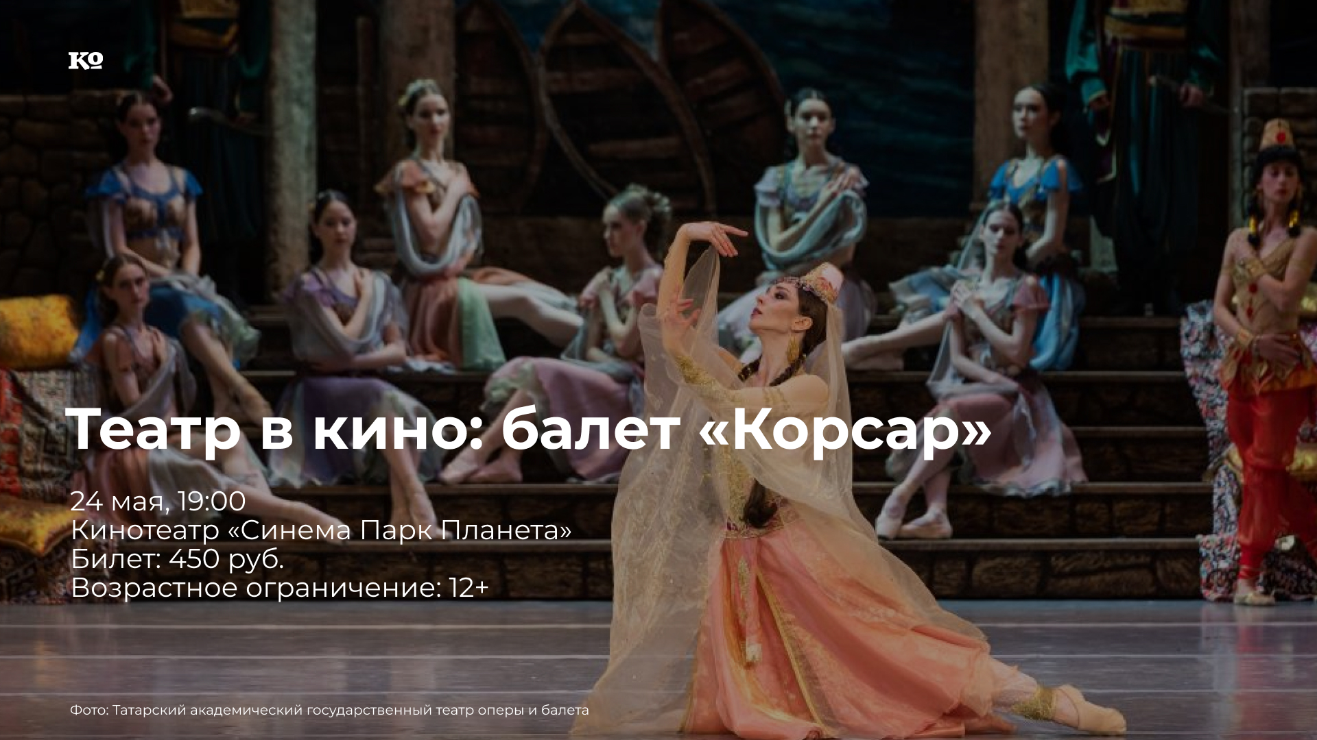 Классический балет в постановке Татарского академического государственного театра оперы и балета имени Мусы Джалиля. В сюжете «Корсара», основанном на одноимённой поэме Байрона, есть всё необходимое для зрительского успеха: история про пиратов с кораблекрушением, похищениями, любовными страстями и коварными предательствами… Хореография спектакля удивительно разнообразна: здесь и пряный колорит восточных танцев, и торжествующая гармония классики. Эти золотые страницы хореографии бережно сохранены постановщиком казанского спектакля «Корсар» Владимиром Яковлевым.