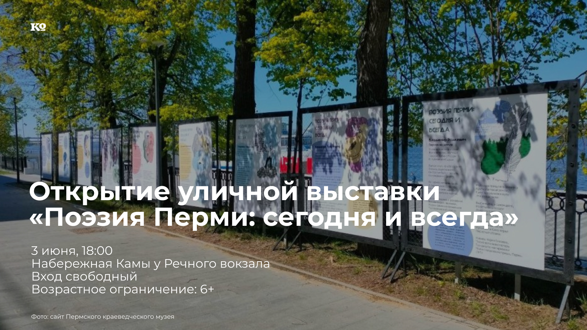 На набережной возле Речного вокзала открывается уличная выставка о городской поэзии. Она познакомит жителей и гостей города с творчеством таких поэтов, как Василий Каменский, Владимир Радкевич, Владимир Котельников, Владислав Дрожащих, Вячеслав Раков, Владимир Лаврентьев, Григорий Данской, Евгений Гусев. Связующим мотивом выставки стали образы города в пермской поэзии. Поэты, чьи стихи представлены на ней, по-своему переживают городские кварталы и наделяют их символическими смыслами — это пространства детства, любви, разлуки, вдохновения, судьбы. На открытии выставки пермские поэты прочитают стихи, а создатели выставки расскажут о замысле и возможностях экспозиции. Вместе они обозначат новую творческую локацию в городе, которую можно использовать для поэтических слэмов, литературных экскурсий и самостоятельного погружения в поэзию Перми.