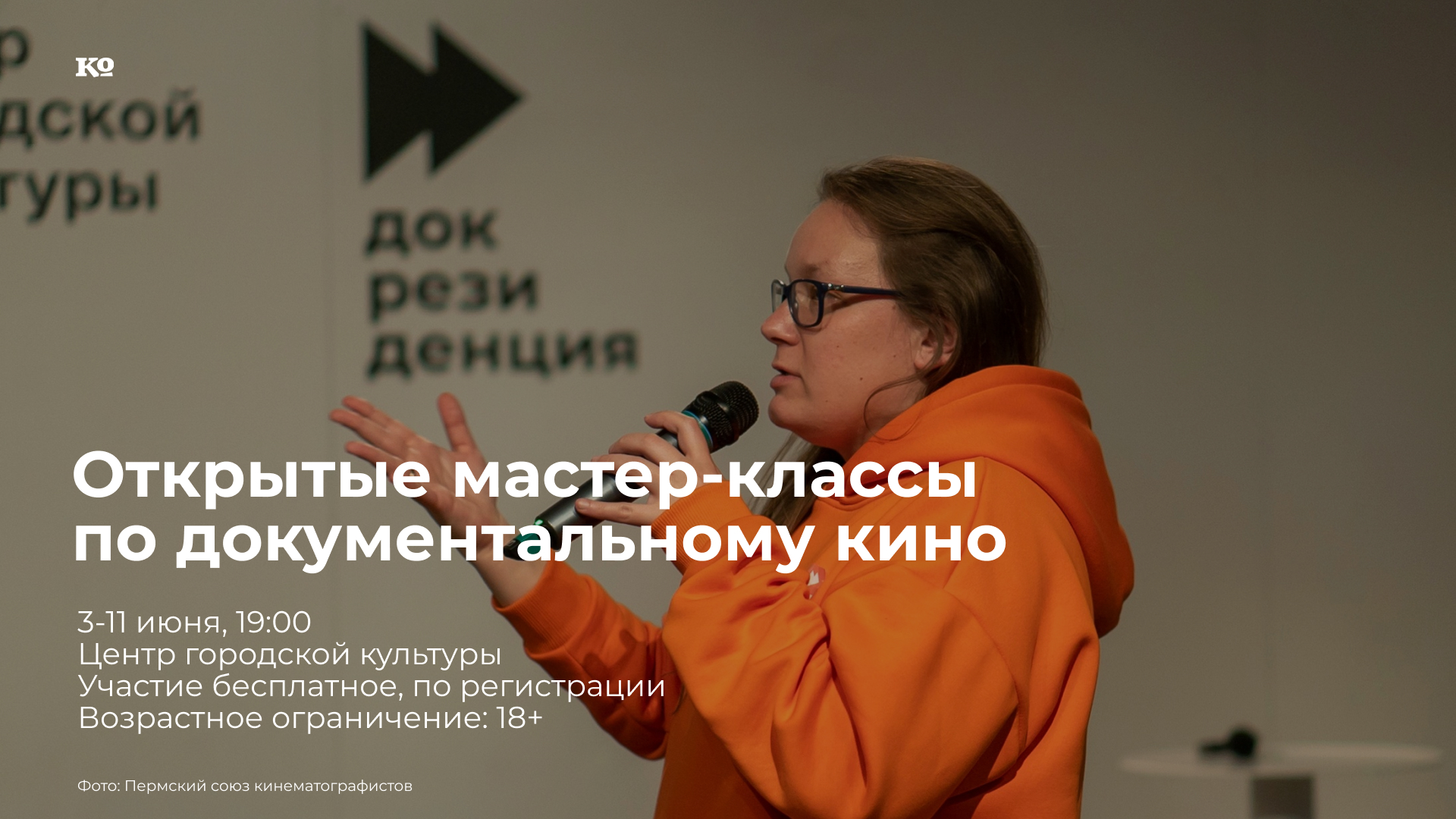 С 3 по 11 июня кинолаборатория Док-резиденция (18+) приглашает на открытые мастер-классы о документальном кино. В Пермь приедут приглашённые спикеры, встречи открыты для всех желающих. Преподаватель ВГИКа и МШК, ведущий подкаста «Крупным планом» на «Кинопоиске» Всеволод Коршунов объяснит, почему в XXI веке документальное кино обгоняет игровое, режиссёр Ольга Аверкиева расскажет, как режиссировать жизнь в документальном кино и почему важно сформировать собственный киноязык, а оператор Артур Соколов поделится своими мыслями о том, как запись звука влияет на съёмочный процесс и как вести работу со звуком в процессе монтажа фильма. Начало каждой встречи в 19:00. Зарегистрироваться на мастер-классы можно здесь.