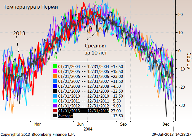 частях мира, включая Пермь. Мы предлагаем взглянуть на график среднедневной