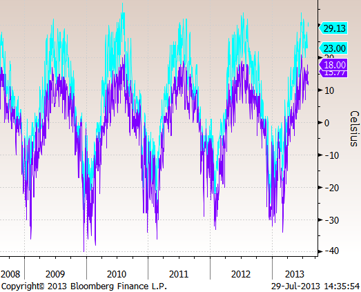 Терминал Блумберг имеет функцию по анализу погоды в разных