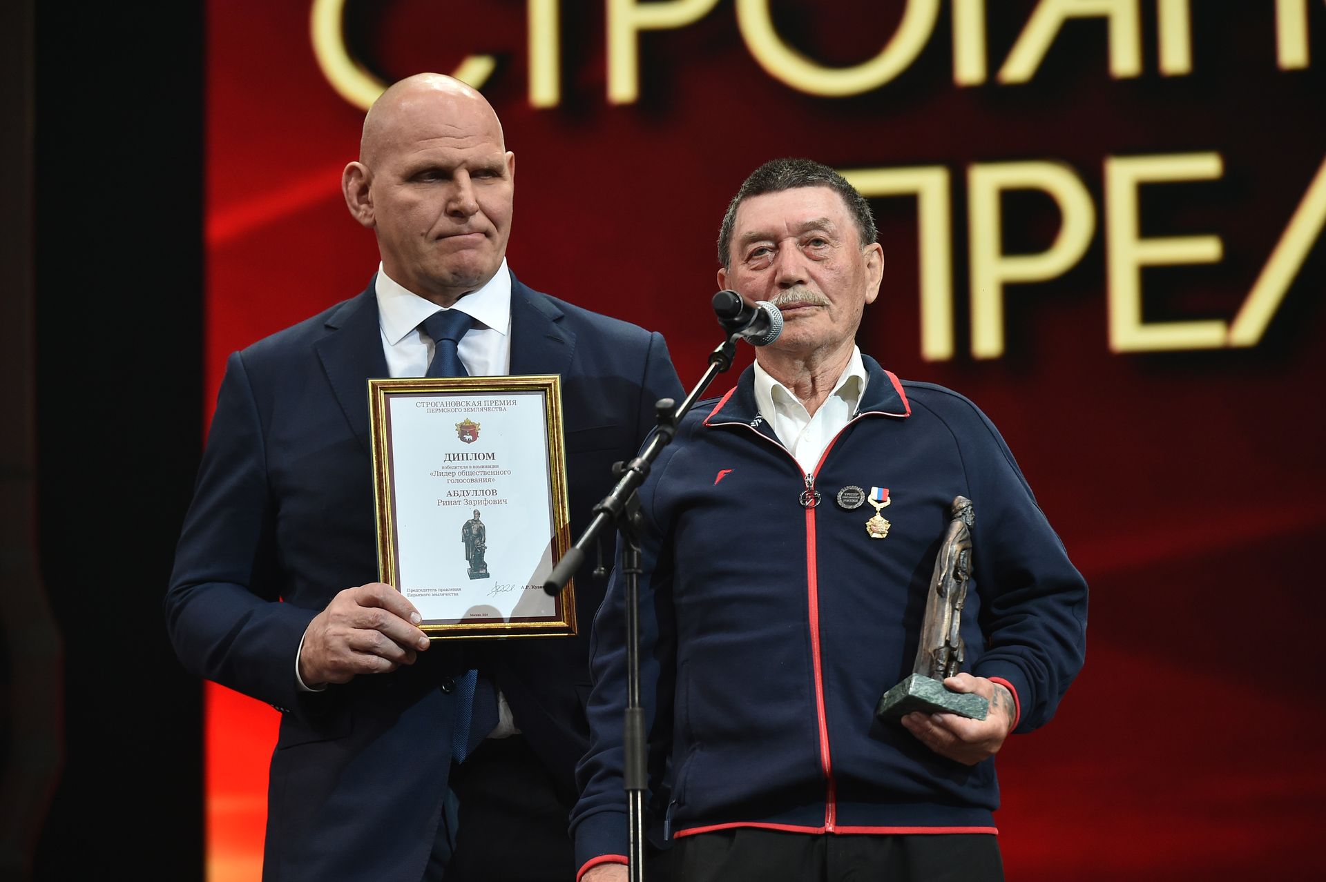 Помимо основных номинаций, у Строгановской премии есть специальный приз — «Лидер общественного голосования». Он вручается человеку, набравшему наибольшее число голосов. Победу одержал заслуженный тренер Ринат Абдуллов, набравший 10 742 голоса. Награду ему вручил советский и российский спортсмен, трёхкратный олимпийский чемпион, многократный чемпион мира и Европы по греко-римской борьбе, Герой России, сенатор Совета Федерации Александр Карелин.