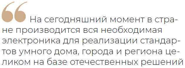 Ещё один важный вопрос в сфере цифровизации — это технологический суверенитет страны. На сегодняшний момент в стране производится вся необходимая электроника для реализации стандартов умного дома, города и региона целиком на базе отечественных решений, заявил заместитель министра промышленности и торговли РФ Василий Шпак. Более того, по его мнению, вопрос применения исключительно российских решений в этой сфере — аксиома. Зарубежные решения не должны использоваться в принципе.