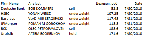 Но мы не являемся уникальными в пессимизме, за пару дней в Bloomberg появились следующие рекомендации по «Уралкалию»: