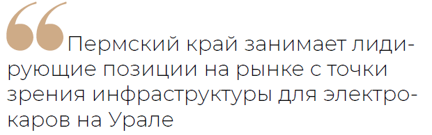 «Городская зарядная инфраструктура у нас более развита, чем в Екатеринбурге, Челябинске, Ижевске и Кирове. Что касается позиции относительно других регионов по продажам, то мы имеем примерно одинаковые позиции с Екатеринбургом, так как у них представлены несколько серьёзных дилеров электрических машин», — говорит эксперт.