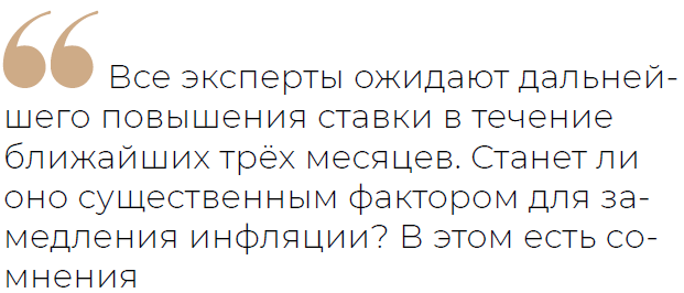 И, безусловно, все эксперты ожидают дальнейшего повышения ставки в течение ближайших трёх месяцев. И опять же — станет ли оно существенным фактором для замедления инфляции? В этом есть сомнения.