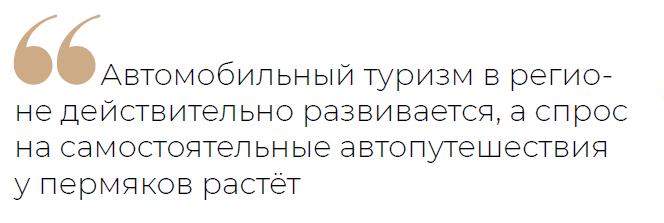 По мнению члена совета директоров ГК «Июль» Алексея Деткина, автомобильный туризм в регионе действительно развивается, а спрос на самостоятельные автопутешествия у пермяков растёт.