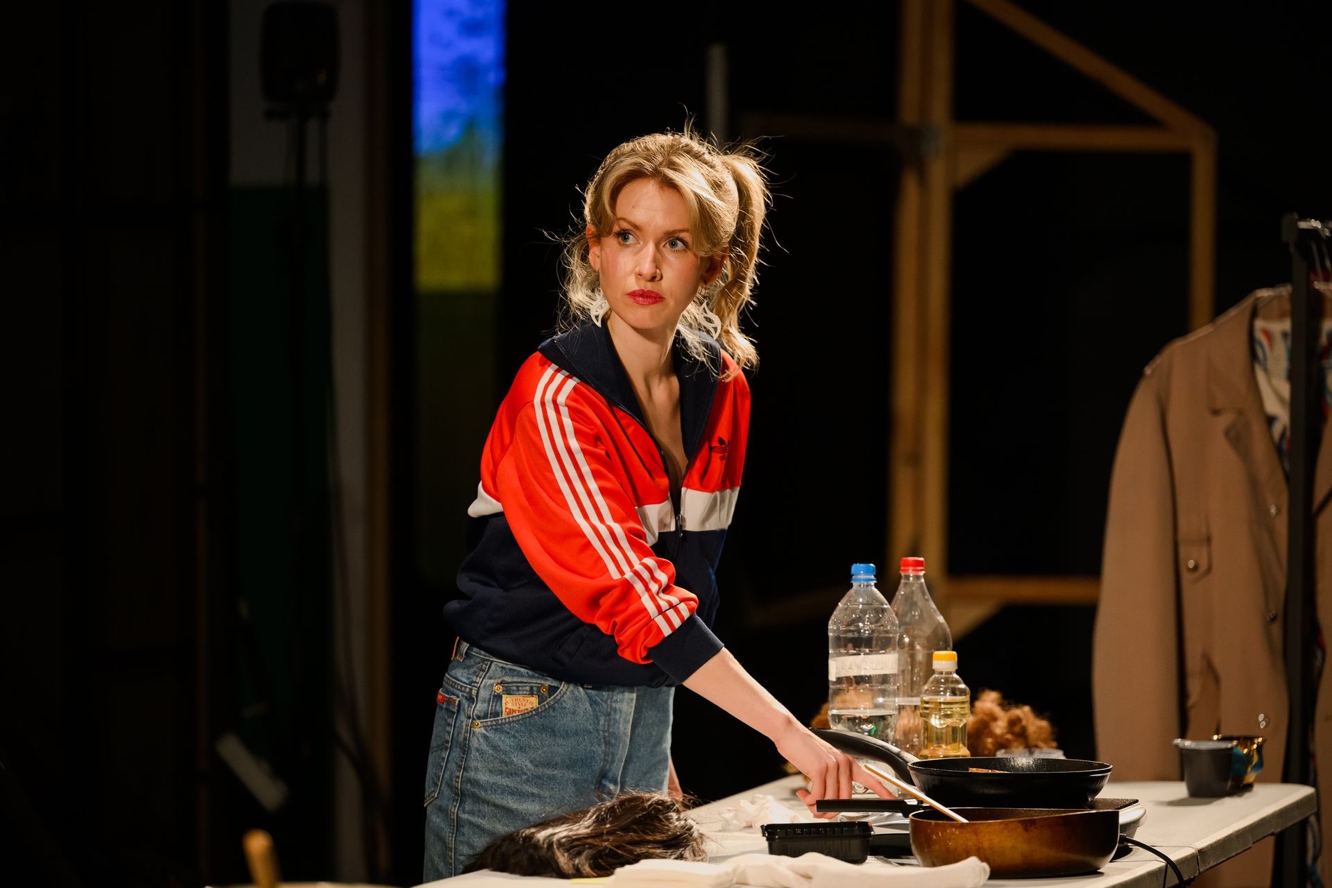 В отличие от пьесы, в этом спектакле песня о ноже звучит дважды, её текст — важный ключ к пониманию бытового абсурда, который царит в мире «Серёжи…»; а вокал Дарьи Копыловой очень украшает спектакль. Невозможно не упомянуть вокального коуча Арину Звереву, её работа выше всяких похвал.