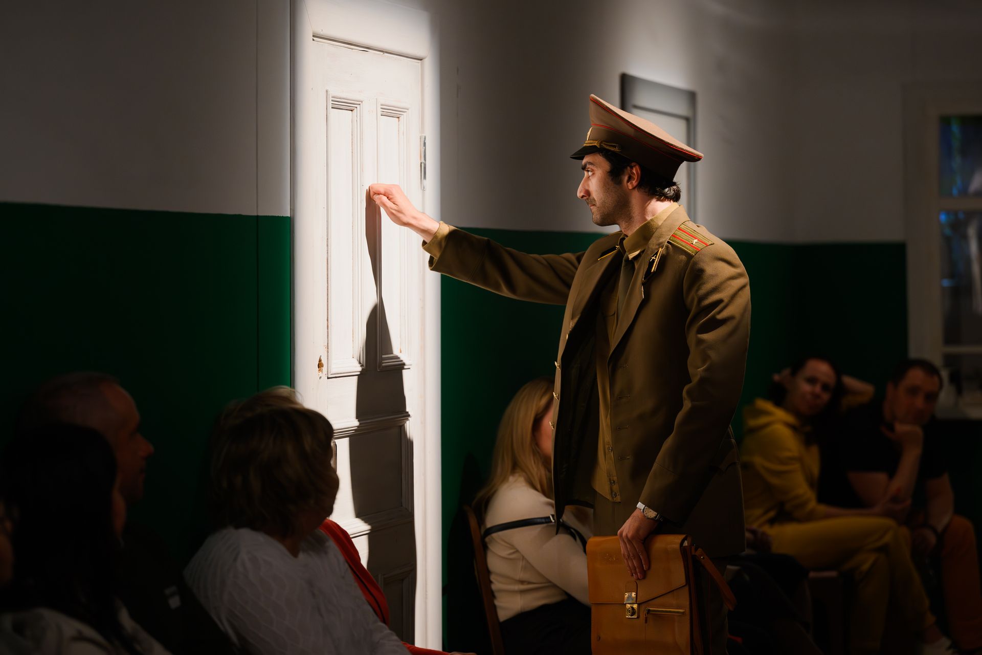 Спектакль Дмитрия Волкострелова «Коридор» (16+) — это наблюдение над «изнанкой жизни». Точнее, над двумя изнанками: зрители делятся на две группы, и одна из них размещается в коридоре коммунальной квартиры, выстроенном на планшете сцены, а вторая — за стенами этого коридора; затем группы меняются местами и спектакль повторяется, а точки зрения меняются.
