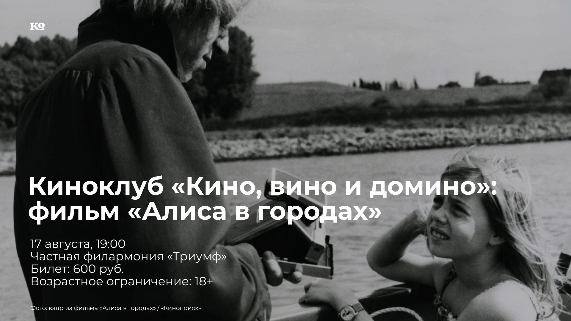 На встречах киноклуба «Кино, вино и домино» под аккомпанемент вина обсуждают незаслуженно незамеченные фильмы, новые картины, режиссёрские дебюты и киноленты, которых нет в прокате. В субботу, 17 августа, будут смотреть фильм режиссёра Вима Вендерса «Алиса в городах». Сначала кажется, что в этой чёрно-белой ленте ничего не произойдёт, разве что немецкий журналист Филипп Винтер наснимает ещё пару сотен полароидных снимков. Он путешествует по восточному побережью США под ритмы Чака Берри в поисках материала, но работа не клеится. Первое значимое событие случается по пути домой. Филипп знакомится в аэропорту с немкой Лизой и её дочерью Алисой. Рейс задерживается, в процессе ожидания мать внезапно сбегает, оставив девятилетнюю Алису с новым знакомым. Филиппу ничего не остаётся, кроме как совершить второе путешествие — по родному континенту, с чужим ребёнком, в поисках неизвестно кого, под музыку группы Can и Густава Малера.