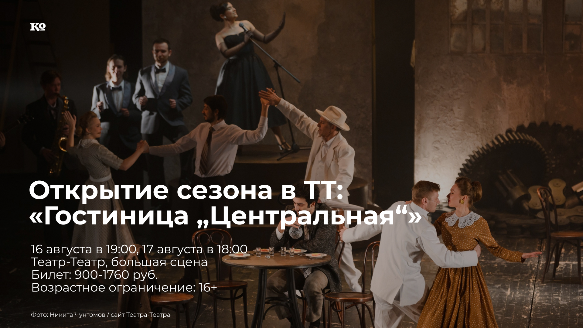 Первым спектаклем, который труппа ТТ сыграет на большой сцене в 98-м театральном сезоне, станет «Гостиница „Центральная». Эту светлую ностальгическую историю о любимом городе, его истории и людях поставили в рамках праздничной программы к 300-летию Перми. Авторы спектакля рассказывают о знаковой для города «семиэтажке» на перекрёстке улиц Сибирской и Советской через три временных пласта: 40-е годы, 60-е и современность. Разные поколения «соединяет» в одном пространстве оригинальный ход: зрители словно оказываются на съёмочной площадке, где создаётся фильм про гостиницу и её постояльцев, про Пермь и её жителей. В основе литературного текста лежит огромный пласт документальных материалов, воспоминаний, интервью. Спектакль, как вскрытая капсула времени, напоминает о ярких фактах истории Перми и знакомит с интересными человеческими судьбами, ведь «история — это всегда люди».