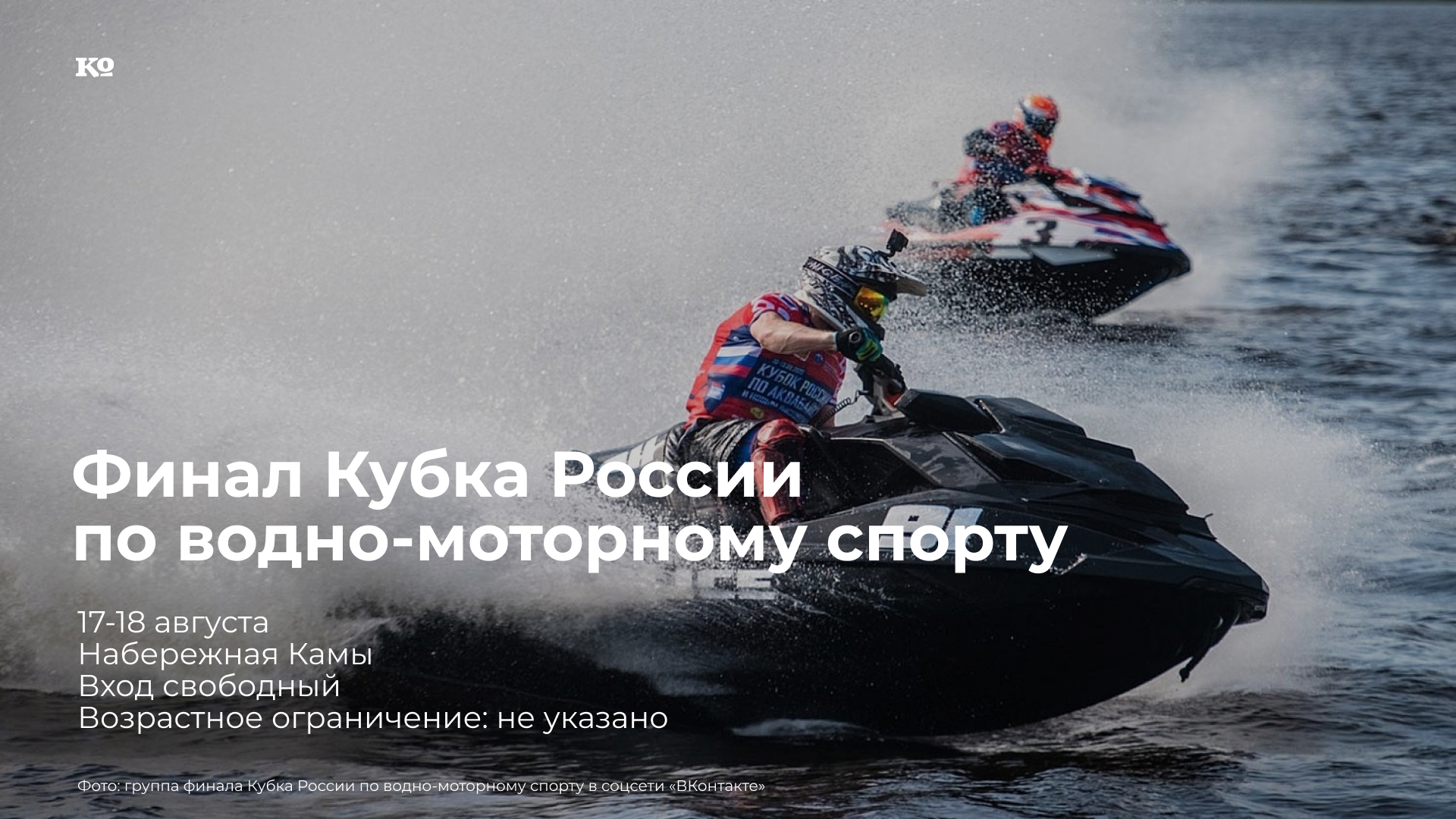 В Перми на городской набережной состоится решающий старт Кубка России по водно-моторному спорту в классе "аквабайк". Соберутся ведущие спортсмены страны, для которых турнир станет определяющим в распределении мест по итогам сезона. Всего ожидается участие порядка 100 сильнейших спортсменов из 15 регионов России. Торжественное открытие и парад участников на воде состоятся 17 августа в 12:00, после этого начнётся турнир, который продлится до 18:00. На следующий день соревновательная часть запланирована с 11:00 до 16:00. С берега можно будет посмотреть, как спортсмены разыграют награды в кольцевых гонках, слаломе, фристайле, гидрофлайте и мотосерфе. Помимо самих соревнований, которые обещают быть очень зрелищными, для зрителей будет организована развлекательная программа.