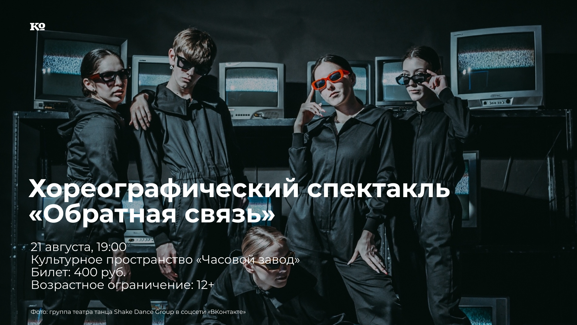 «Обратная связь» — это спектакль, который взял на себя задачу обозначить возросшее влияние внешних мнений. Важная концептуальная работа затрагивает проблему нашего социума. Мы все привыкли ставить баллы, ранжировать, классифицировать всё и всех, кто нас окружает. Мы давно перестали понимать, что наши слова могут кого-то сильно ранить и обидеть. Постоянно оцениваем и получаем оценки. Правильно ли это? Спектакль поставлен пермским молодёжным театром танца Shake Dance Group. В 2023 году постановка была удостоена Гран-при на Международном фестивале-конкурсе хореографического искусства Omsk Dance Festival.