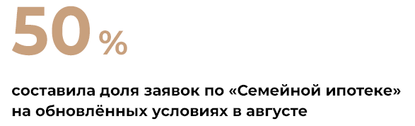 При этом растёт доля заявок по «Семейной ипотеке» на обновлённых условиях. В июле она составила 30% от общего числа, в августе — уже 50%. Анастасия Гилёва прогнозирует, что в ближайшие месяцы она будет держаться на уровне 70—75% от общего числа. Средний чек по «Семейной ипотеке» с обновлёнными условиями в Абсолют Банке держится на уровне 4—6 млн руб. Эксперт полагает, что эта программа останется драйвером ипотечного рынка. Но в целом во второй половине года ожидается сокращение объёмов жилищного кредитования, а также рост спроса на сделки с созаёмщиками, поскольку зачастую доходов одного заёмщика для одобрения сделки не хватает.