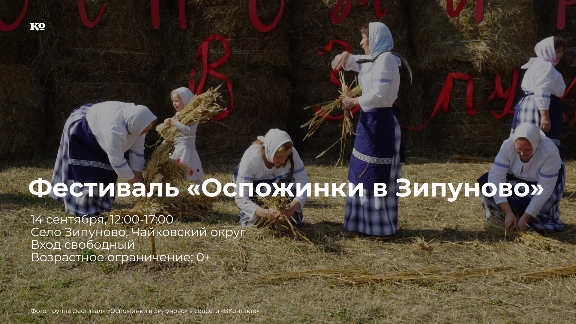 Жители села Зипуново, посёлка Бурёнка, деревень Некрасово и Сарапулка соберутся на колоритном празднике «Оспожинки в Зипуново», посвящённом окончанию полевых работ, плодородию и семейному благополучию. Этот праздник культурной самобытности, традиций и обрядов, вошедший в единый календарь событийного туризма Прикамья, будет интересен всем, кто увлекается этно-экологическими путешествиями. Праздничные гуляния пройдут на живописном сельском пригорке у реки Бурёнка с импровизированной сценой, торговыми рядами и огромными фигурами из сена. Гостей ждут: песни и сказания, ярмарка сельскохозяйственных продуктов, ремесленные мастерские, чемпионат по рубке капусты, выступления гармонистов и балалаечников, конкурс-выставка овощей гигантов, а также гонки на садовых тачках, традиционный осенний обряд «Похороны мух» и многое другое.