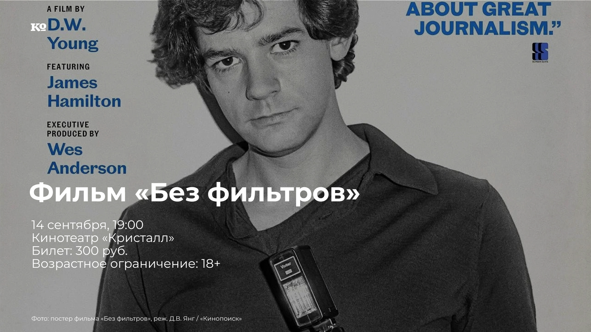 В рамках фестиваля документального кино о новой культуре Beat Weekend, который сейчас идёт в Пермской синематеке, состоится показ картины «Без фильтров» о фотографе Джеймсе Хэмилтоне. Он сотрудничал с Harper’s Bazaar, Vanity Fair, Rolling Stone, The Village Voice и снимал абсолютно всех героев американской культуры, от Вуди Аллена и Сюзан Зонтаг до Лу Рида и Джима Джармуша. В этом фильме он вспоминает ключевые моменты своей карьеры, рассказывает байки о знаменитостях и размышляет о том, что такое хорошая фотография. Фильм представит фотограф Евгений Дёмшин. Показ будет на языке оригинала с русскими субтитрами.